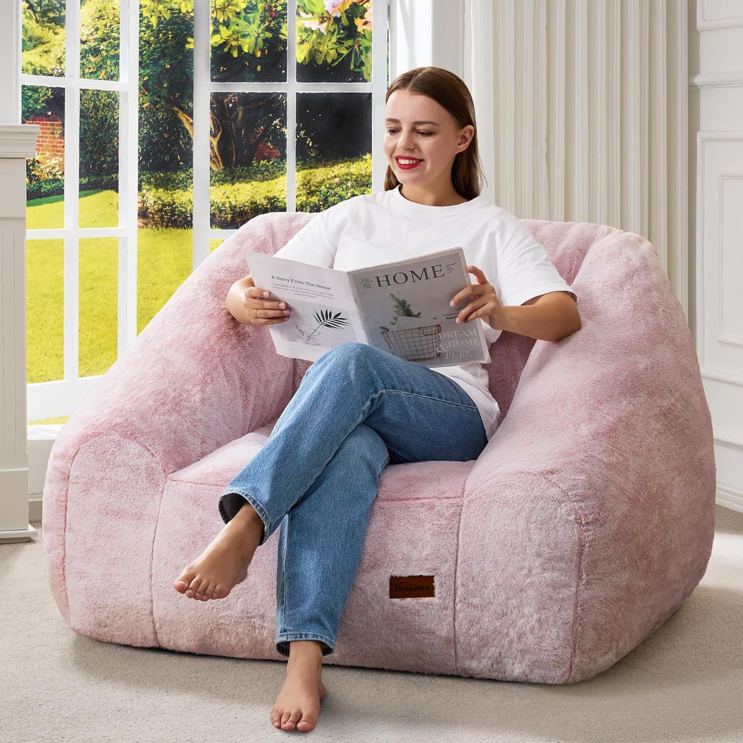 Hobestluk Giant Memory Foam Bean Bag Chair for Adults - Pink Two-Tone