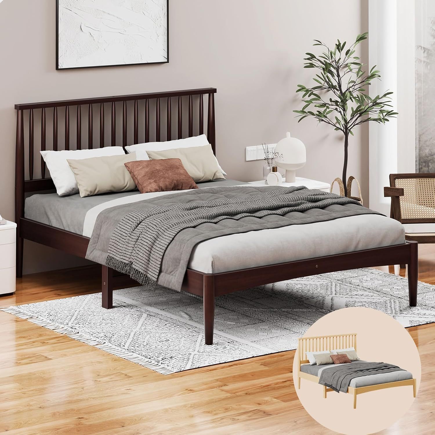 ALFORDSON Double Bed Frame - Solid Pine Wood, Scandinavian Walnut Finish