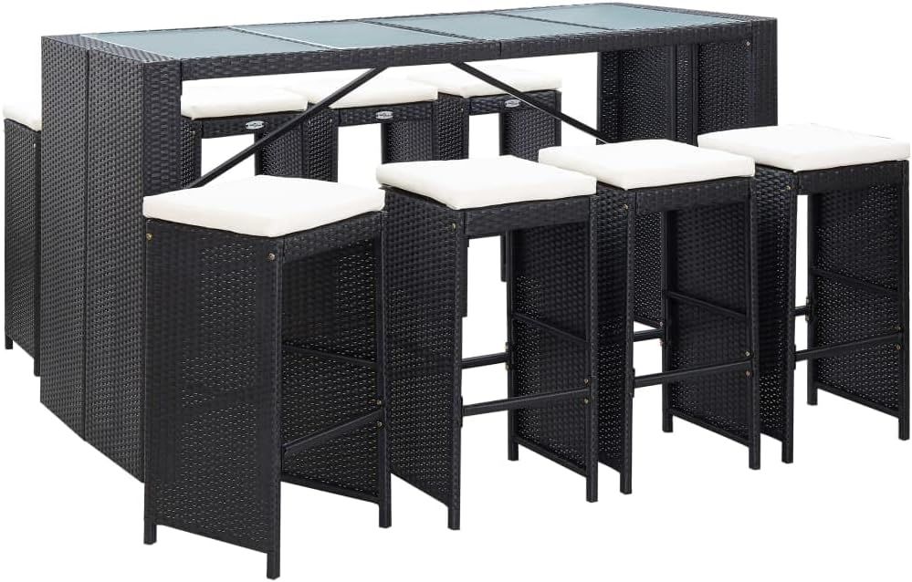 This poly rattan outdoor bar set is suitable for various garden settings. Made with water-resistant PE rattan, it is easy to clean and designed for regular outdoor use. Includes a contemporary table paired with stools. The powder-coated steel frame ensures sturdiness and stability, while its lightweight construction allows easy movement for different arrangements. It comes with thickly-padded seat cushions for added comfort.