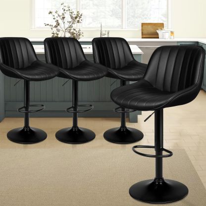 ALFORDSON Set of 4 Wendy Adjustable Swivel Bar Stools with Leather Finish - 70-90cm Height