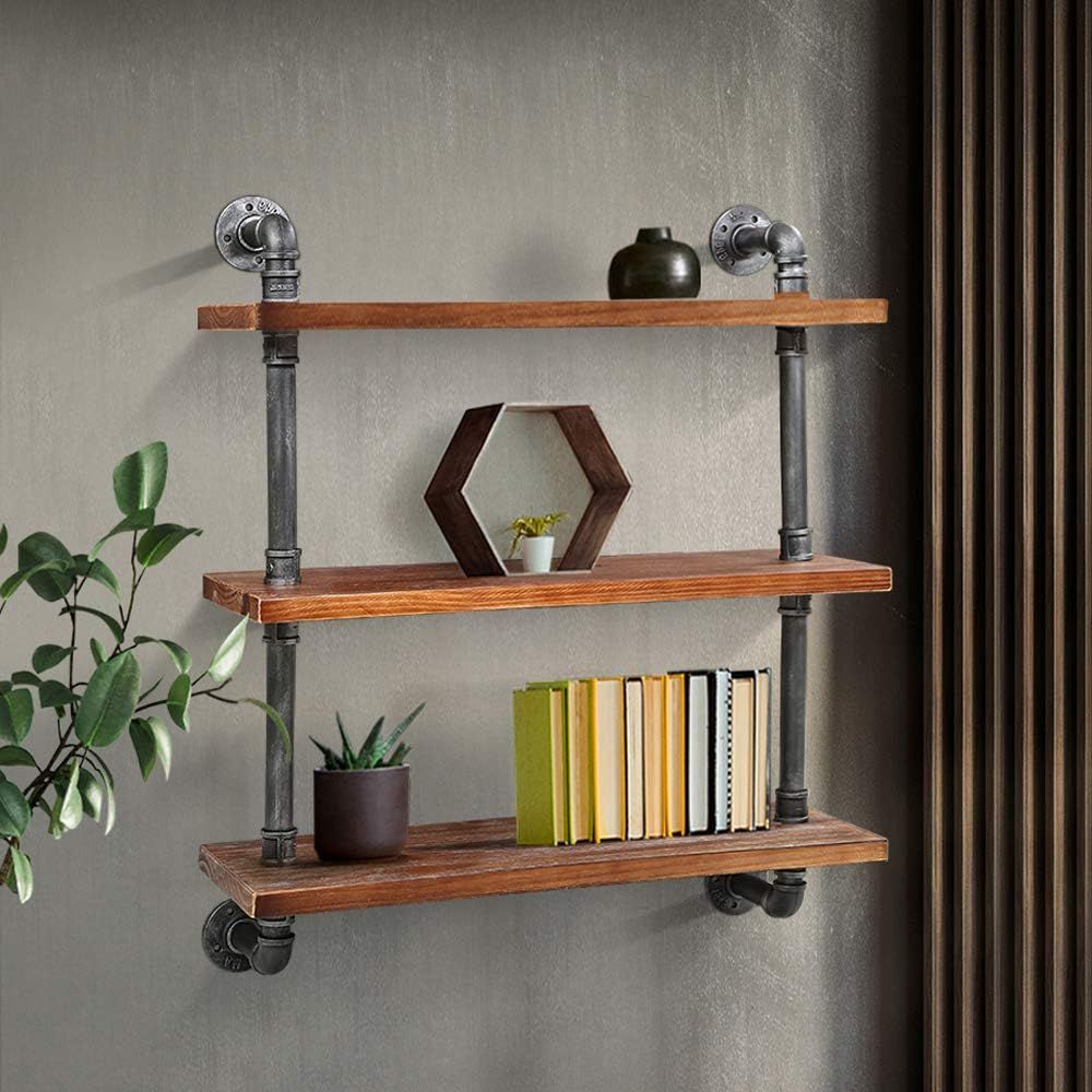 Artiss 3-Tier Floating Wall Shelf, Industrial Rustic Brown, 61cm for Home and Office