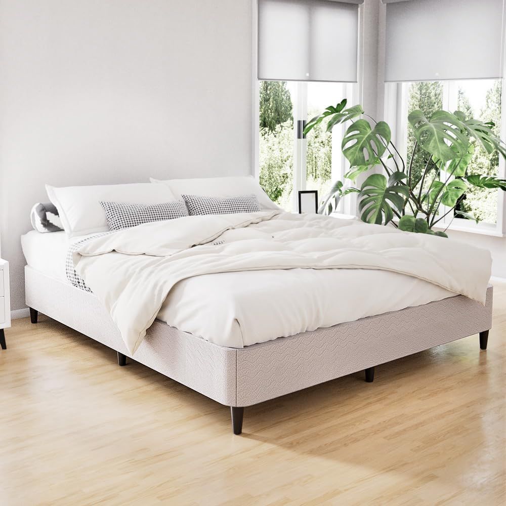 Artiss Black Double Bed Frame with Heavy-Duty Metal Base and Fabric Cover, 300kg Capacity