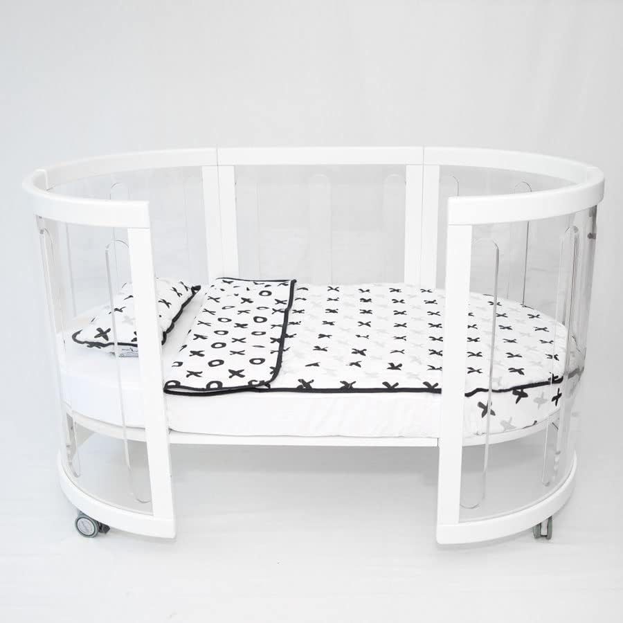 The quilt coverlet is designed for oval-style cots and includes a quilted pillow. It provides a secure coverlet panel to attach the quilt to your oval mattress, preventing it from covering your baby's face. Pillow Size: 47 cm x 24 cm.