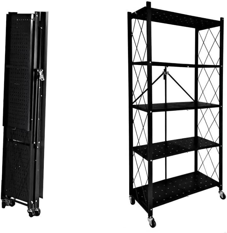 Foret Foldable Shelf with metal construction designed for various storage needs. Suitable for books, kitchen items, and more. Includes wheels for easy mobility.