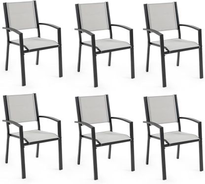Modern design with a powder-coated frame for durability. Non-marking feet ensure protection for floors. The breathable mesh fabric is designed to withstand outdoor use. Suitable for various outdoor settings and can be paired with the Fortia Outdoor Dining Table.