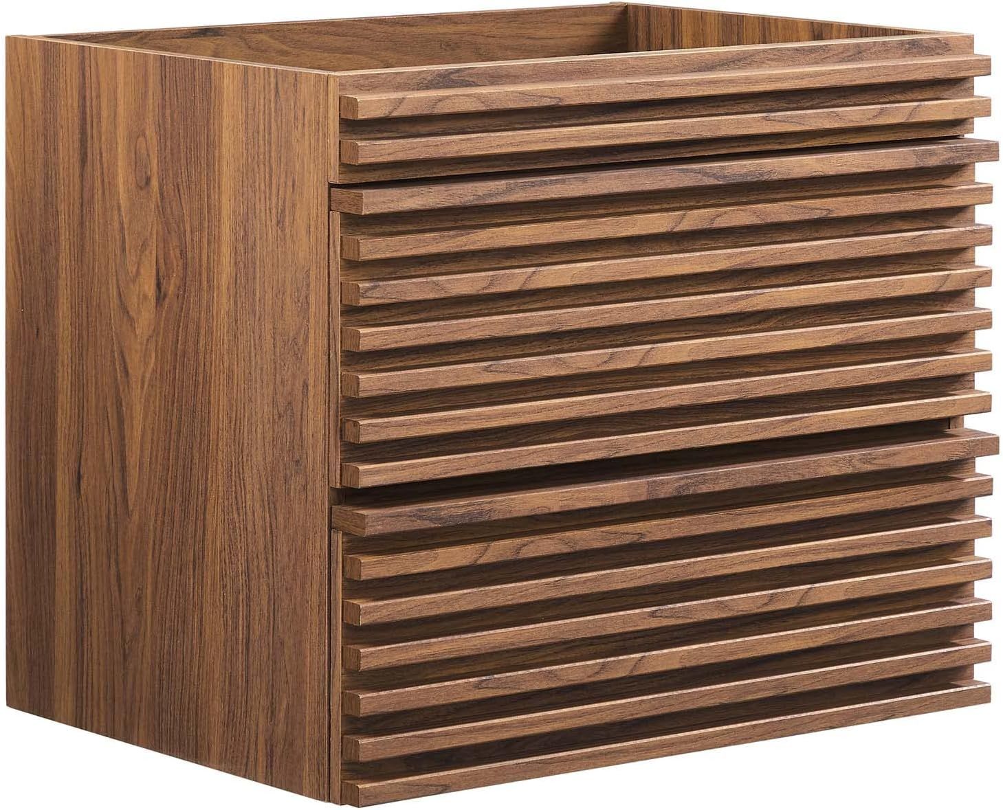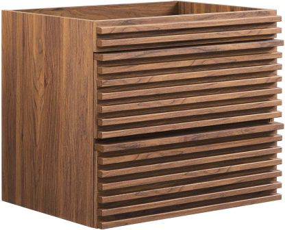 Enhance the functionality and aesthetics of your bathroom with this minimalist bathroom vanity. Featuring a wall-mount design, this vanity includes an MDF and particleboard frame with wood grain laminate, offering both durability and practicality. Enjoy organised space with its under-sink storage, comprising two full-extension drawers, allowing for clutter-free visual space. Please note that the sink basin is not included. Designed with modern needs in mind, this vanity requires assembly. Dimensions: 24"W x 18"L x 20"H.
