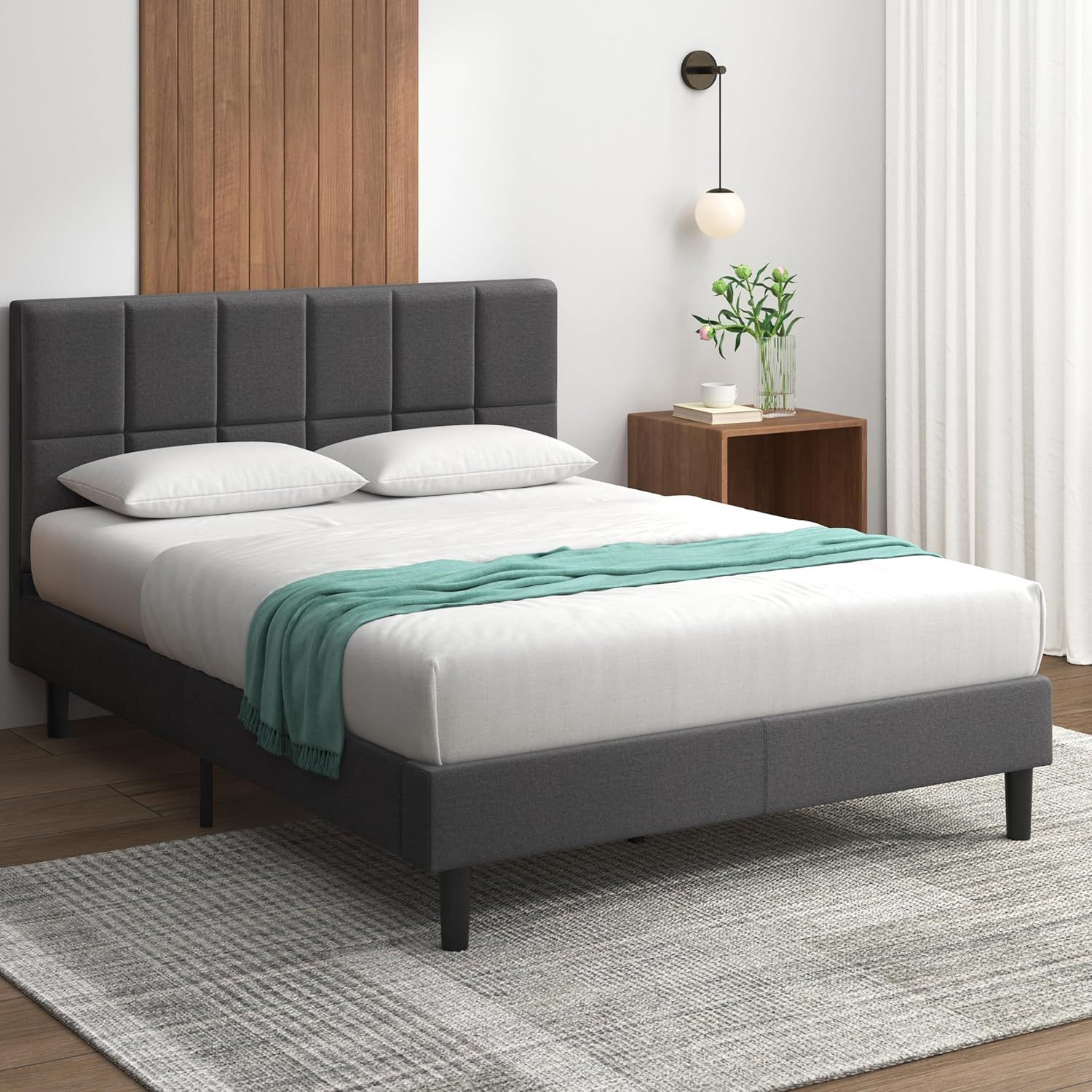 Zinus Lottie Queen Bed Frame with Mattress Support, Dark Grey, Easy Assembly